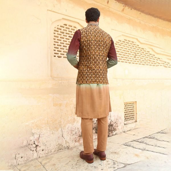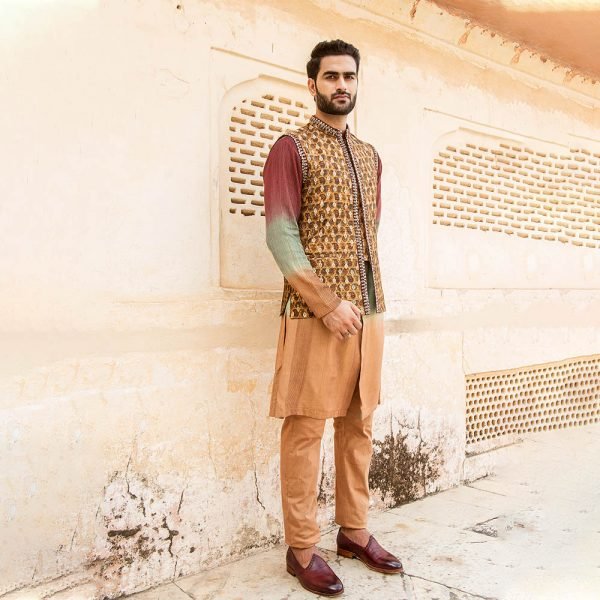 Ombre kurta matched with printed jacket and off white box pants